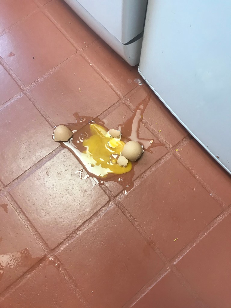 Baking is never without incident though! Even when eggs are like gold dust due to panic buying, my brain doesn’t always register how incredibly wasteful it would be to drop one. The signal from my brain to my hand seemed to get lost somewhere along the way and my hand didn’t grip it as it should have.