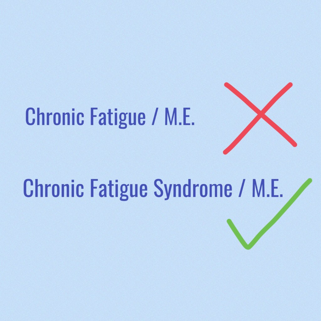 CFS/ME or ME/CFS is what a lot of us in the community use. But to see Chronic Fatigue/ME used? Nah. Don’t do that please. The label M.E. was replaced by Chronic Fatigue Syndrome. It wasn’t replaced by chronic fatigue.