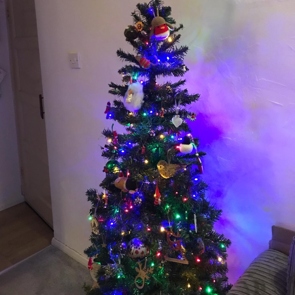 I get emotional about this cheap, skinny, old tree every year. It used to be in my bedroom when I was living with my parents and spent so much time ill in bed. Now it’s up in my own home. Duct tape and Christmas spirit holding it up!